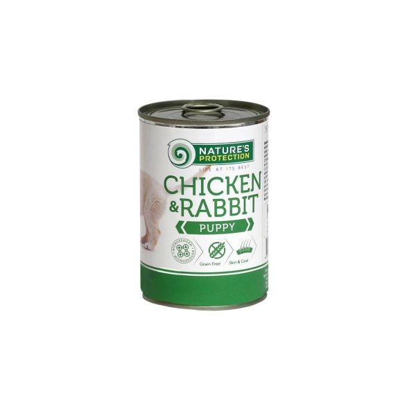Nature’s Protection Puppy Chicken & Rabbit er super premium hermetikk for valper av alle raser. Laget med høykvalitets kylling og kanin i en smakfull og lett fordøyelig kraft, støtter den sunn vekst, sterke bein og generell velvære. Myk og enkel å tygge, perfekt balansert for valper opptil 12 måneder og supplerer tørrfôr for valper.